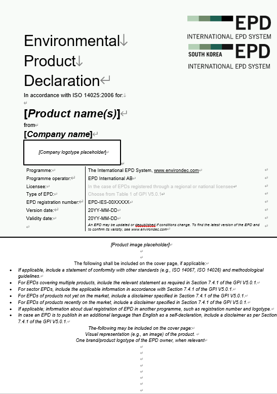 EPD 템플릿 - 기타 모든 제품 카테고리: 한국 전용 템플릿 ·EPD template - All other product categories (Version 2.0 of the default indicator list based on GPI 5) 다운로드
